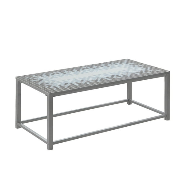 Monarch Coffee Table Grey Blue Tile Top Hammered Silver Walmart Com